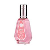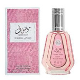 دکلن ۵۰ میل زنانه ارض الزعفران مدل موصوف وردی Mousuf Wardi از رایحه ای گرم و شیرین برخوردار است. عطر ادکلن موصوف زنانه وردی صورتی Mousuf Wardi زنانه از شرکت ارض الزعفران است . ادکلن موصوف Mousuf Wardi یکی از پرفروش ترین ادکلن های شرکت ارض الزعفران می باشد که از ماندگاری بالا و پخش بوی بسیار قوی برخوردار است و در بین خانم ها بسیار پرطرفدار است و مناسب برای استفاده در مهمانی ها و چهار فصل سال می باشد.رایحه های به کار رفته در عطر ادکلن موصوف وردی صورتی Mousuf Wardi بسیار خاص می باشد . رایحه های اورجینال و خالص میزان ماندگاری و پخش بوی این ادکلن را بالا برده است . مهمترین دلیل خوشبویی ، جذابیت ، ماندگاری و پخش بوی موصوف وردی صورتی زنانه رایحه های خالص و اورجینال می باشد . بعد از اسپری کردن ادکلن Mousuf Wardi رایحه آغازی شامل : شکلات ، انگور استشمام می شود . ترکیب بوی شکلات و انگور خوشبویی و رد بوی بسیار خوبی از ادکلن Mousuf Wardi به جا می گذارد . بعد از گذشت اندک زمانی بوی نت میانی شامل : عود ، مسک به مشام شما می رسد.